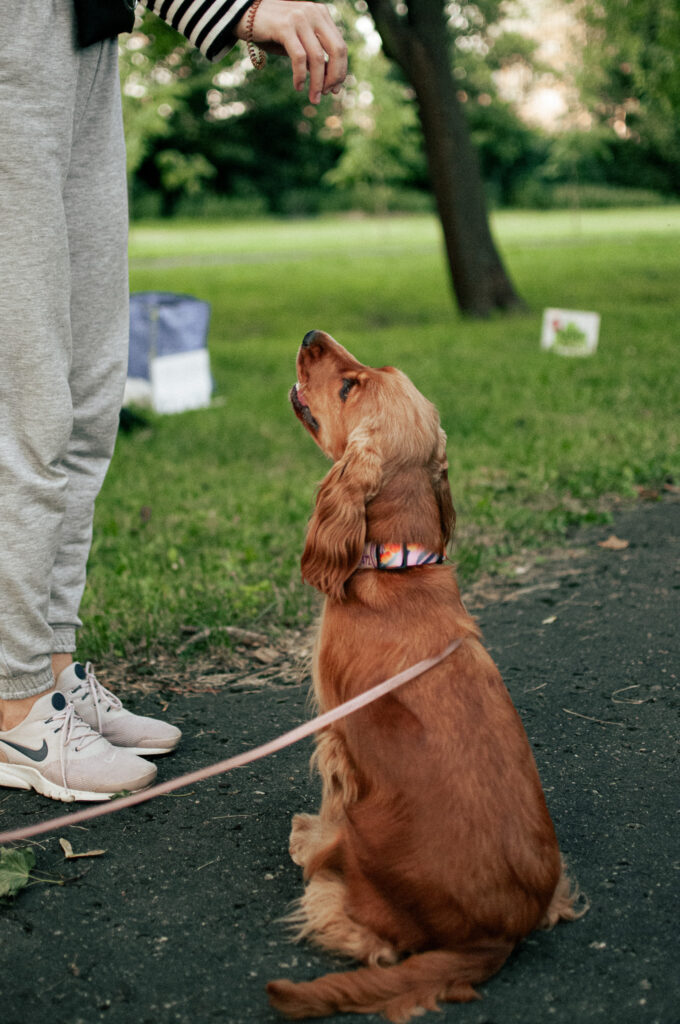 W trakcie konsultacji spacerowej pracujemy nad pawidłową komunikacją na poziomie pies-opiekun.